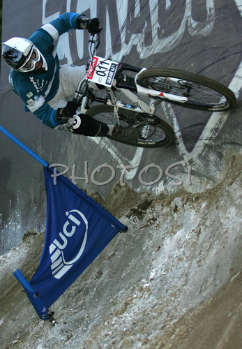 : Helene Fruhwirth of Austria riding in last race of Men Four cross (4X) Nissan UCI Mountain Bike World Cup. Final race of MTB World Cup was held in Maribor, Slovenia, on 15th of September 2007.
