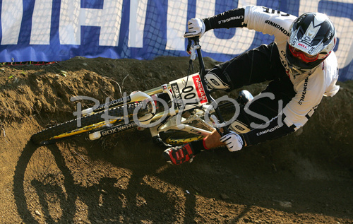 : Michael Hannah of Australia riding in last race of Men Downhill Nissan UCI Mountain Bike World Cup. Final race of MTB World Cup was held in Maribor, Slovenia, on 16th of September 2007.