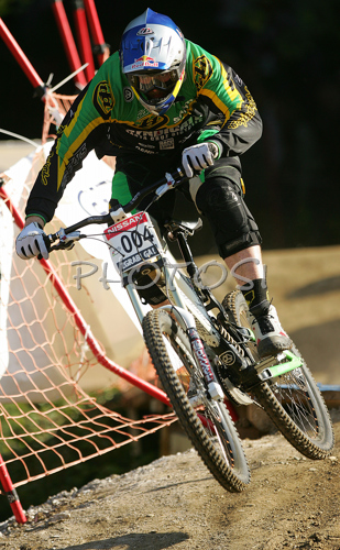 : Nathan Rennie of Australia riding in last race of Men Downhill Nissan UCI Mountain Bike World Cup. Final race of MTB World Cup was held in Maribor, Slovenia, on 16th of September 2007.