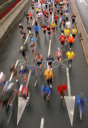 : Athletes running in 12th Ljubljana Marathon. 12th Ljubljana Marathon was held in Ljubljana, Slovenia, on 28th of October 2007. Marathon was held in difficult cold and rainy weather, so already hard track was even harder for more then 8000 runners who were competing in this years marathon and half marathon.