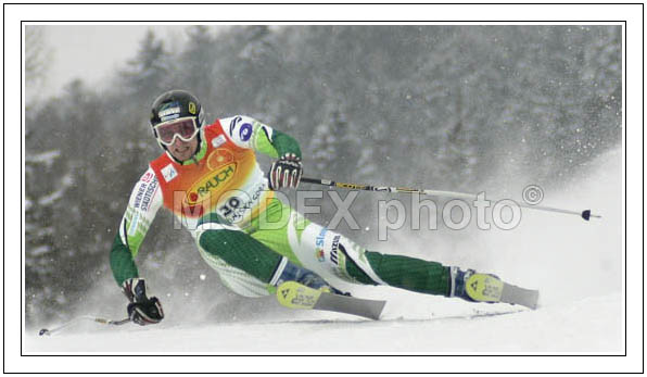 : Ales Gorza of Slovenia skiing during giant slalom race of Audi Alpine Skiing World Cup in Kranjska Gora. February 26, 2005.
