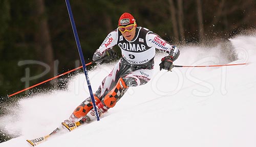 : Kalle Palander of Finland skiing during FIS World Cup Slalom race in Kranjska Gora, Slovenia. Race was won by Giorgio Rocca of Italy, Thomas Grandi of Canada placed second, while Ted Ligety of USA finished third. Palander finished 5th.