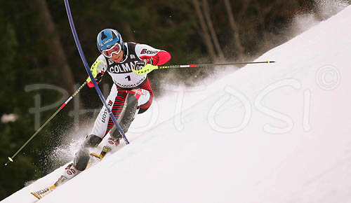 Kranjska Gora ,Slovenia - 22.12.2005 : Leading after first run Benjamin Raich of Austria skiing during FIS World Cup Slalom race in Kranjska Gora, Slovenia. Race was won by Giorgio Rocca of Italy, Thomas Grandi of Canada placed second, while Ted Ligety of USA finished third. Raich made mistake in second run and didnt finish the race. Photo by: Primoz Jeroncic/PhotoSI