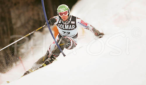 : Jukka Rajala of Finland skiing during FIS World Cup Slalom race in Kranjska Gora, Slovenia. Race was won by Giorgio Rocca of Italy, Thomas Grandi of Canada placed second, while Ted Ligety of USA finished third. Rajala didnt qualify for second run.