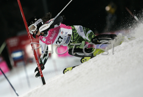 Zagreb ,Croatia - 04.01.2007 : Sanni Leinonen of Finland skiing in second run of Women Alpine skiing slalom FIS World Cup in Zagreb, Croatia. Snow queen trophy in Zagreb, Croatia was held in Sljeme, Croatia on 4th of January 2007. Photo by: Primoz Jeroncic/PhotoSI