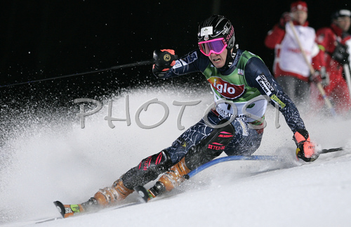 : Ted Ligety of USA skiing in first run of Men Alpine skiing slalom FIS World Cup in Schladming, Austria. Men slalom FIS Alpine skiing World Cup was held on 30th of January 2007 in Schladming, Austria.