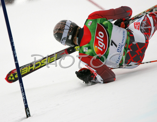 Bad Kleinkirchheim ,Austria - 09.12.2007 : Kalle Palander of Finland falling in steepest part of first run of men slalom race of Audi FIS Men Alpine skiing World Cup 2008. Slalom race was held in Bad Kleinkirchheim, Austria on 9th of December 2007. Photo by: Primoz Jeroncic/PhotoSI