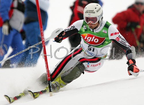 Bad Kleinkirchheim ,Austria - 09.12.2007 : Thomas Mermillod Blondin of France skiing in first run of men slalom race of Audi FIS Men Alpine skiing World Cup 2008. Slalom race was held in Bad Kleinkirchheim, Austria on 9th of December 2007. Photo by: Primoz Jeroncic/PhotoSI