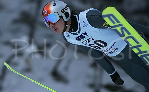 : Volodymyr Veredyuk of Ukrain soars through the air during Individual ski jumping race of FIS Nordic Junior Ski World Championships, which was held in Kranj, Slovenia. Race was won by Gregor Schlierenzauner of Austria, Jurij Tepes of Slovenia placed second, while Andrea Morassi of Italy placed third.