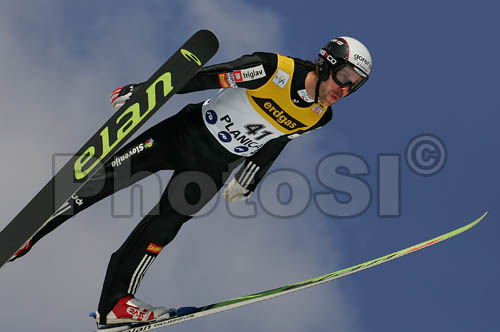 Planica ,Slovenia - 17.03.2006 : Primoz Peterka of Slovenia soars through the air during qualification jump for Saturdays e.on Ruhrgas FIS Ski Jumping World Cup finals. Qualifications were held in Planica, Slovenia on 17.March 2006. 15 best placed ski jumpers in World Cup are automaticaly qualified for competition while next 25 ski jumpers needs to qualify for main competition through qualification jump. Photo by: Primoz Jeroncic/PhotoSI