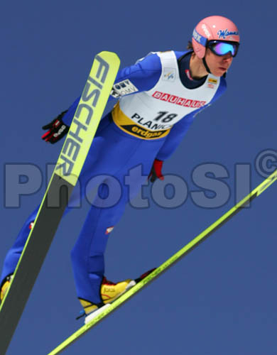 : Martin Koch of Austria soars through the air during last race of e.on Ruhrgas FIS Ski Jumping World Cup finals. Last race of e.on Ruhrgas FIS Ski Jumping World Cup was held in Planica, Slovenia on 19.March 2006.