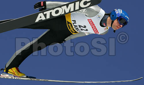 : Matti Hautamaeki of Finland soars through the air during last race of e.on Ruhrgas FIS Ski Jumping World Cup finals. Last race of e.on Ruhrgas FIS Ski Jumping World Cup was held in Planica, Slovenia on 19.March 2006.