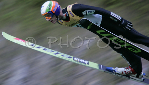 : Jakub Janda of Czech soars through the air during qualification jump for tomorrows Summer FIS Grand Prix in ski jumping Kranj 2006. Qualifications were held in Ski jumping center in Kranj, Slovenia on 1. September 2006. First 50 ski jumpers qualified for tomorrow Summer FIS Grand Prix in ski jumping Kranj 2006, which will be held in Kranj, Slovenia on 2. September 2006.