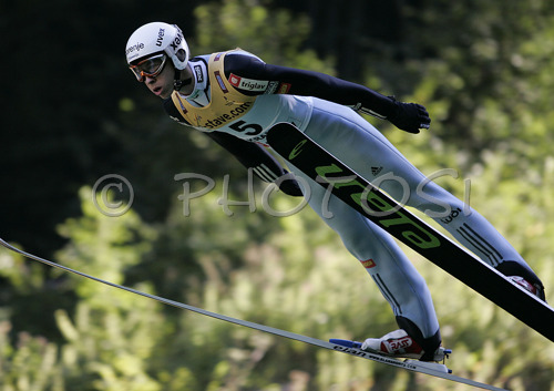 : Jure Sinkovec of Slovenia soars through the air during qualification jump for tomorrows Summer FIS Grand Prix in ski jumping Kranj 2006. Qualifications were held in Ski jumping center in Kranj, Slovenia on 1. September 2006. First 50 ski jumpers qualified for tomorrow Summer FIS Grand Prix in ski jumping Kranj 2006, which will be held in Kranj, Slovenia on 2. September 2006.