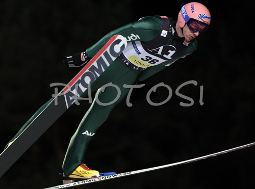 : Michael Neumayer of Germany soars through the air during FIS Ski jumping World Cup race in Villach, Austria. First of two ski jumping World Cup races in Villach, Austria was held on 13th of December 2007, as substitute race for canceled race in Kranj, Slovenia