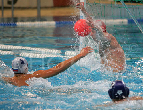 : Goalie Igor Belofrastov of Slovenia saves his goal during match between Slovenia and Malta of qualification waterpolo tournament for European championship. Match between Slovenia and Malta took place in Kranj, Slovenia on 8.April 2006. Slovenia defeated Malta with 10-6.