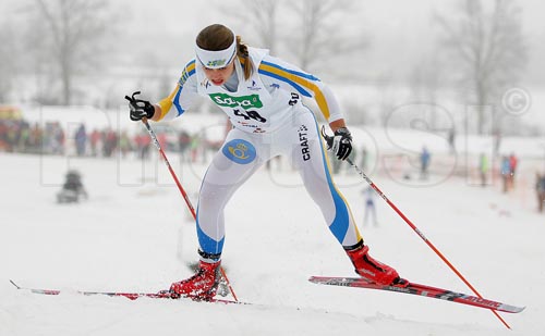 : Anna Hansson of Sweden skiing during Junior Women qualification for FIS Nordic Junior Ski World Championships Sprint race were held in Medvode, Slovenia. First 32 skiers qualified for afternoon finals.