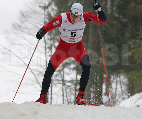 : Anders Gloersen of Norway skiing during Junior Men qualification for FIS Nordic Junior Ski World Championships Sprint race were held in Medvode, Slovenia. First 30 skiers qualified for afternoon finals.