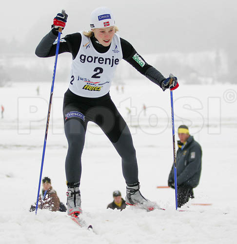 : Gur Stroem Solli of Norway skiing during Under-23 Women qualification for FIS Nordic Junior Ski World Championships Sprint race were held in Medvode, Slovenia. First 32 skiers qualified for afternoon finals.