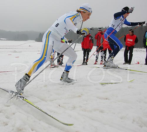 : Fredrik Uusitalo of Sweden (L) and Matias Strandvall of Finland (R) skiing during Under-23 Men finals of FIS Nordic Junior Ski World Championship sprint race were held in Medvode, Slovenia. Race was won by Harald Wurm of Austria, Josef Wenzl of Germany placed second, Marcus Hellner of Sweden finished third, while Oeystein Pettersen of Norway finished fourth.