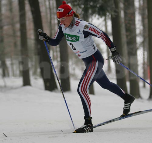 : 8th placed Ekaterina Vorontsova of Russia skiing during Under-23 Women FIS Nordic Junior Ski World Championships 10km Classic race which was held in Medvode, Slovenia. Race was won by Justyna Kowalczyk of Poland, Irina Artemova of Russia placed second, while her teammate Ioulia Tchekalova of Russia placed third.