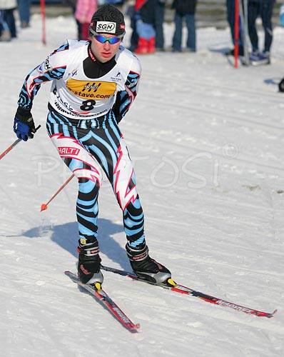 : Olli Muotka of Finland skiing during Junior Nordic Combined sprint race of FIS Nordic Junior Ski World Championships which was held in Medvode, Slovenia on 5.February 2006.