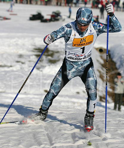 : Second placed Akito Watabe of Japan skiing during Junior Nordic Combined sprint race of FIS Nordic Junior Ski World Championships which was held in Medvode, Slovenia on 5.February 2006.