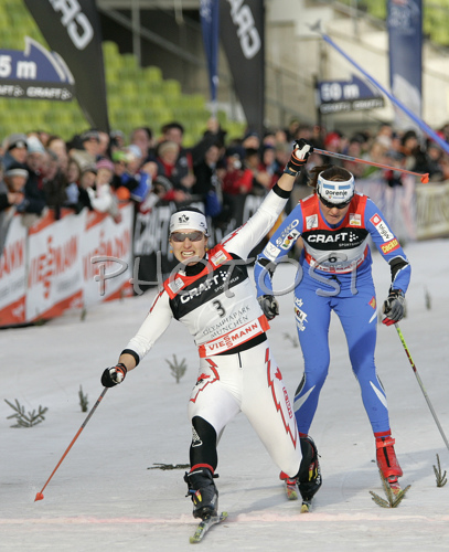 Munich ,Germany - 31.12.2006 : Third placed Chandra Crawford of Canada sprinting in finals of first race of FIS Viessmann Tour de Ski. Women sprint race in Munich, Germany was, after cancelation of races in Nove Mesto, Czech, first race of FIS Viessmann Tour de Ski and was held in Olympic stadium in Munich, Germany on 31st of December 2006. Photo by: Primoz Jeroncic/PhotoSI