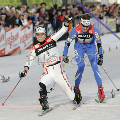 : Third placed Chandra Crawford of Canada sprinting in finals of first race of FIS Viessmann Tour de Ski. Women sprint race in Munich, Germany was, after cancelation of races in Nove Mesto, Czech, first race of FIS Viessmann Tour de Ski and was held in Olympic stadium in Munich, Germany on 31st of December 2006.