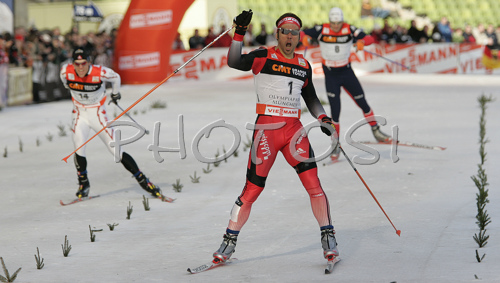: Christoph Eigenmann of Switzerland winning in finals of first race of FIS Viessmann Tour de Ski. Men sprint race in Munich, Germany was, after cancelation of races in Nove Mesto, Czech, first race of FIS Viessmann Tour de Ski and was held in Olympic stadium in Munich, Germany on 31st of December 2006.