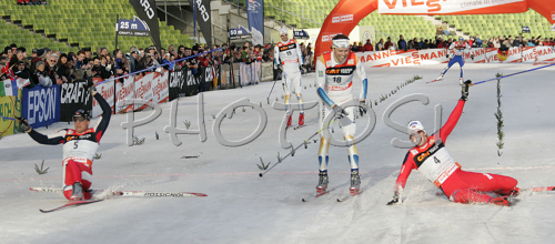 Munich ,Germany - 31.12.2006 : Tor Arne Hetland of Norway (L), Bjoern Lind of Sweden (M), Simen Oestensen of Norway (R) skiing in b finals of first race of FIS Viessmann Tour de Ski. Men sprint race in Munich, Germany was, after cancelation of races in Nove Mesto, Czech, first race of FIS Viessmann Tour de Ski and was held in Olympic stadium in Munich, Germany on 31st of December 2006. Photo by: Primoz Jeroncic/PhotoSI