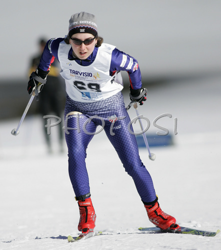 Tarvisio ,Italy - 14.03.2007 : Elisabeth Habermann of USA skiing in Women 5km freestyle race of Junior Nordic skiing World Championships in Tarvisio, Italy. Women 5km freestyle race of Junior Nordic skiing World Championships in Tarvisio, Italy was held on 14th of March 2007 in Fusine, Italy. Due warm weather and lack of snow, cross country skiing races of Junior Nordic skiing World Championships 2007 were moved from Tarvisio, Italy to Fusine, Italy. Photo by: Primoz Jeroncic/PhotoSI
