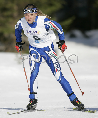Tarvisio ,Italy - 15.03.2007 : Third placed Marina Piller of Italy skiing in Women 10km freestyle race of Under23 Nordic skiing World Championships in Tarvisio, Italy. Women 10km freestyle race of Junior Nordic skiing World Championships in Tarvisio, Italy was held on 15th of March 2007 in Fusine, Italy. Due warm weather and lack of snow, cross country skiing races of Junior Nordic skiing World Championships 2007 were moved from Tarvisio, Italy to Fusine, Italy. Photo by: Primoz Jeroncic/PhotoSI