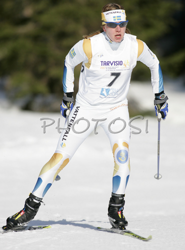 Tarvisio ,Italy - 15.03.2007 : Second placed Sofia Bleckur of Sweden skiing in Women 10km freestyle race of Under23 Nordic skiing World Championships in Tarvisio, Italy. Women 10km freestyle race of Junior Nordic skiing World Championships in Tarvisio, Italy was held on 15th of March 2007 in Fusine, Italy. Due warm weather and lack of snow, cross country skiing races of Junior Nordic skiing World Championships 2007 were moved from Tarvisio, Italy to Fusine, Italy. Photo by: Primoz Jeroncic/PhotoSI