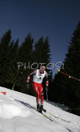 : Winner Dario Cologna of Switzerland skiing in Men 15km freestyle race of Under23 Nordic skiing World Championships in Tarvisio, Italy. Men 15km freestyle race of Under23 Nordic skiing World Championships in Tarvisio, Italy was held on 15th of March 2007 in Fusine, Italy. Due warm weather and lack of snow, cross country skiing races of Junior Nordic skiing World Championships 2007 were moved from Tarvisio, Italy to Fusine, Italy.