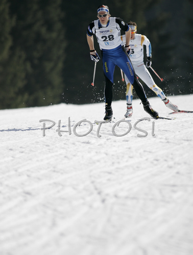 Tarvisio ,Italy - 15.03.2007 : Matias Strandvall of Finland skiing in Men 15km freestyle race of Under23 Nordic skiing World Championships in Tarvisio, Italy. Men 15km freestyle race of Under23 Nordic skiing World Championships in Tarvisio, Italy was held on 15th of March 2007 in Fusine, Italy. Due warm weather and lack of snow, cross country skiing races of Junior Nordic skiing World Championships 2007 were moved from Tarvisio, Italy to Fusine, Italy. Photo by: Primoz Jeroncic/PhotoSI
