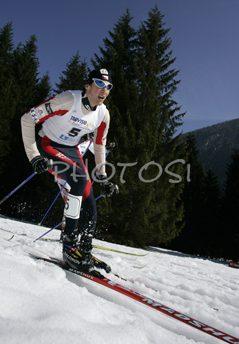 Tarvisio ,Italy - 16.03.2007 : Second placed Ondrej Horya of Czech skiing in Men 10+10km pursuit race of Junior Nordic skiing World Championships in Tarvisio, Italy. Men 10+10km pursuit race of Junior Nordic skiing World Championships in Tarvisio, Italy was held on 16th of March 2007 in Fusine, Italy. Due warm weather and lack of snow, cross country skiing races of Junior Nordic skiing World Championships 2007 were moved from Tarvisio, Italy to Fusine, Italy. Photo by: Primoz Jeroncic/PhotoSI