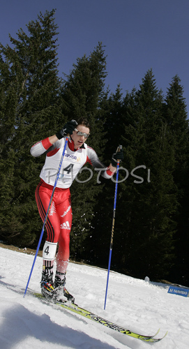 : Winner Dario Cologna of Switzerland skiing in Men 15+15km pursuit race of Under23 Nordic skiing World Championships in Tarvisio, Italy. Men 15+15km pursuit race of Junior Nordic skiing World Championships in Tarvisio, Italy was held on 17th of March 2007 in Fusine, Italy. Due warm weather and lack of snow, cross country skiing races of Junior Nordic skiing World Championships 2007 were moved from Tarvisio, Italy to Fusine, Italy.