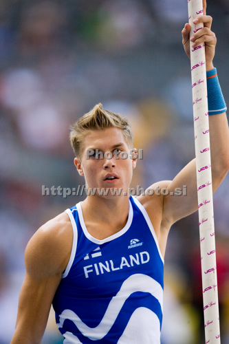 : Eemeli Salomaki of Finland competes in the mens pole vault qualifying event during day six of the 12th IAAF World Athletics Championships at the Olympic Stadium on August 20, 2009 in Berlin, Germany.