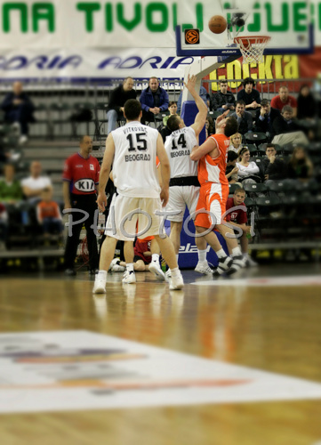 Ljubljana ,Slovenia - 26.04.2008 : Players of KK Partizan Igokea and KK Hemofarm Stada during finals match of Basketball NLB League final four between Partizan Beograd, Serbia and Hemofarm Stada, Vrsac, Serbia. Match between Hemofarm Stada and Partizan Begrad was played on 26th of April 2008 in Tivoli Arena in Ljubljana, Slovenia. Match was won by Partizan, who defeated Hemofarm with 69:51. Photo by: Primoz Jeroncic