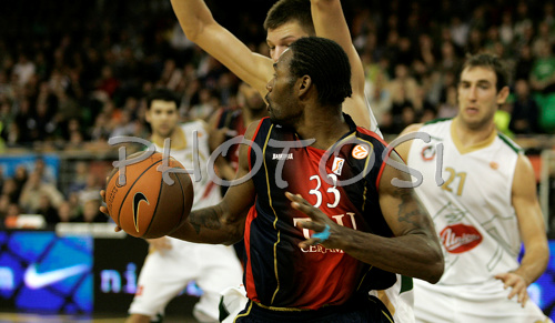 : Pete Mickeal (no.33) of Tau Ceramica during match of Basketball Euroleague between Union Olimpija, Ljubljana, Slovenia and Tau Ceramica, Vitoria, Spain. Match between Union Olimpija and Tau Ceramica was played on 30th of October 2008 in Tivoli Arena in Ljubljana, Slovenia.