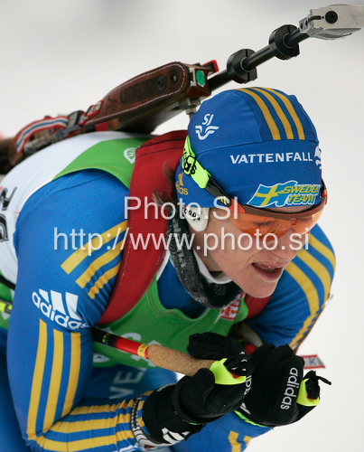 Pokljuka ,Slovenia - 17.12.2009 : Second placed Anna Carin Olofsson-Zidek of Sweden during women 15km individual race of e.on Ruhrgas IBU Biathlon World Cup 2009-10. Women individual race of e.on Ruhrgas IBU Biathlon World Cup was held in Pokljuka, Slovenia, on 17th of December 2009. Photo by: Primoz Jeroncic