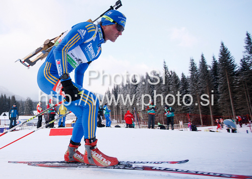 Pokljuka ,Slovenia - 17.12.2009 : David Ekholm of Sweden during men 20km individual race of e.on Ruhrgas IBU Biathlon World Cup 2009-10. Men individual race of e.on Ruhrgas IBU Biathlon World Cup was held in Pokljuka, Slovenia, on 17th of December 2009. Photo by: Primoz Jeroncic