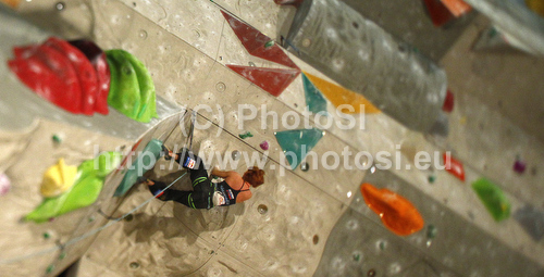 : Natalija Gros of Slovenia during women finals of last IFSC Sport Climbing World cup of 2010 season. Final race of IFSC Sport Climbing World Cup of 2010 season was held in Kranj, Slovenia on 14th of November 2010.