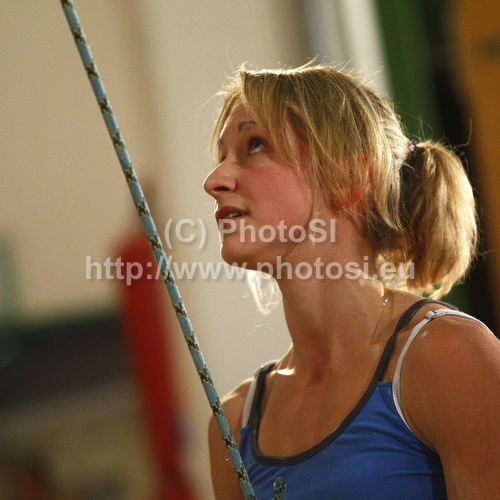 : Angela Eiter of Austria during women finals of last IFSC Sport Climbing World cup of 2010 season. Final race of IFSC Sport Climbing World Cup of 2010 season was held in Kranj, Slovenia on 14th of November 2010.