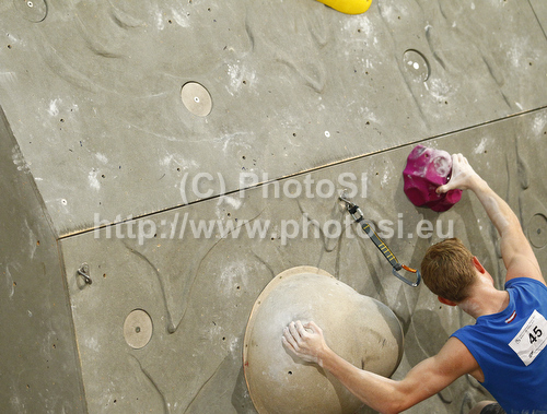 : Jakob Schubert of Austria during men finals of last IFSC Sport Climbing World cup of 2010 season. Final race of IFSC Sport Climbing World Cup of 2010 season was held in Kranj, Slovenia on 14th of November 2010.