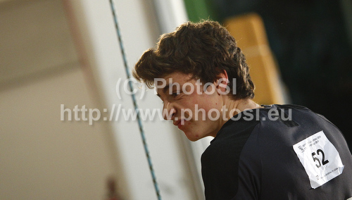 : Gauthier Supper of France during men finals of last IFSC Sport Climbing World cup of 2010 season. Final race of IFSC Sport Climbing World Cup of 2010 season was held in Kranj, Slovenia on 14th of November 2010.