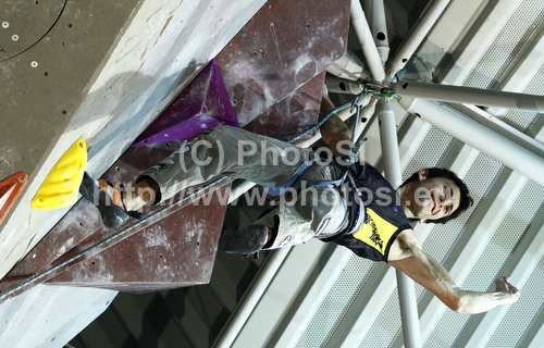 Kranj ,Slovenia - 14.11.2010 : Ramon Julian Puigblanque of Spain during men finals of last IFSC Sport Climbing World cup of 2010 season. Final race of IFSC Sport Climbing World Cup of 2010 season was held in Kranj, Slovenia on 14th of November 2010. Photo by: Primoz Jeroncic