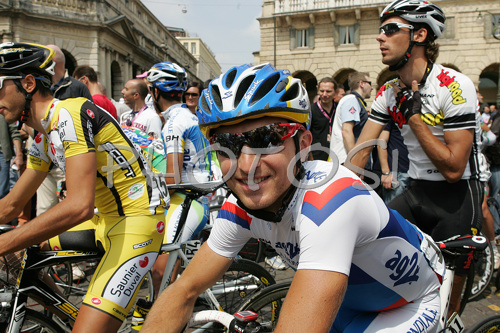 : Tadej Valjavec (Slovenia) of AG2R-La Mondiale at starting area of 14th stage of Giro d Italia, from Verona to Alpe di Pampeago / Val di Fiemme (193 km). 14th stage was held on 24th of May 2008.