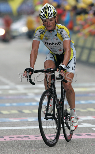 : Second placed Vasil Kiryienka (Belarus) of Tinkoff Credit Systems at finish line of 14th stage of Giro d Italia, from Verona to Alpe di Pampeago / Val di Fiemme (193 km). 14th stage was held on 24th of May 2008.